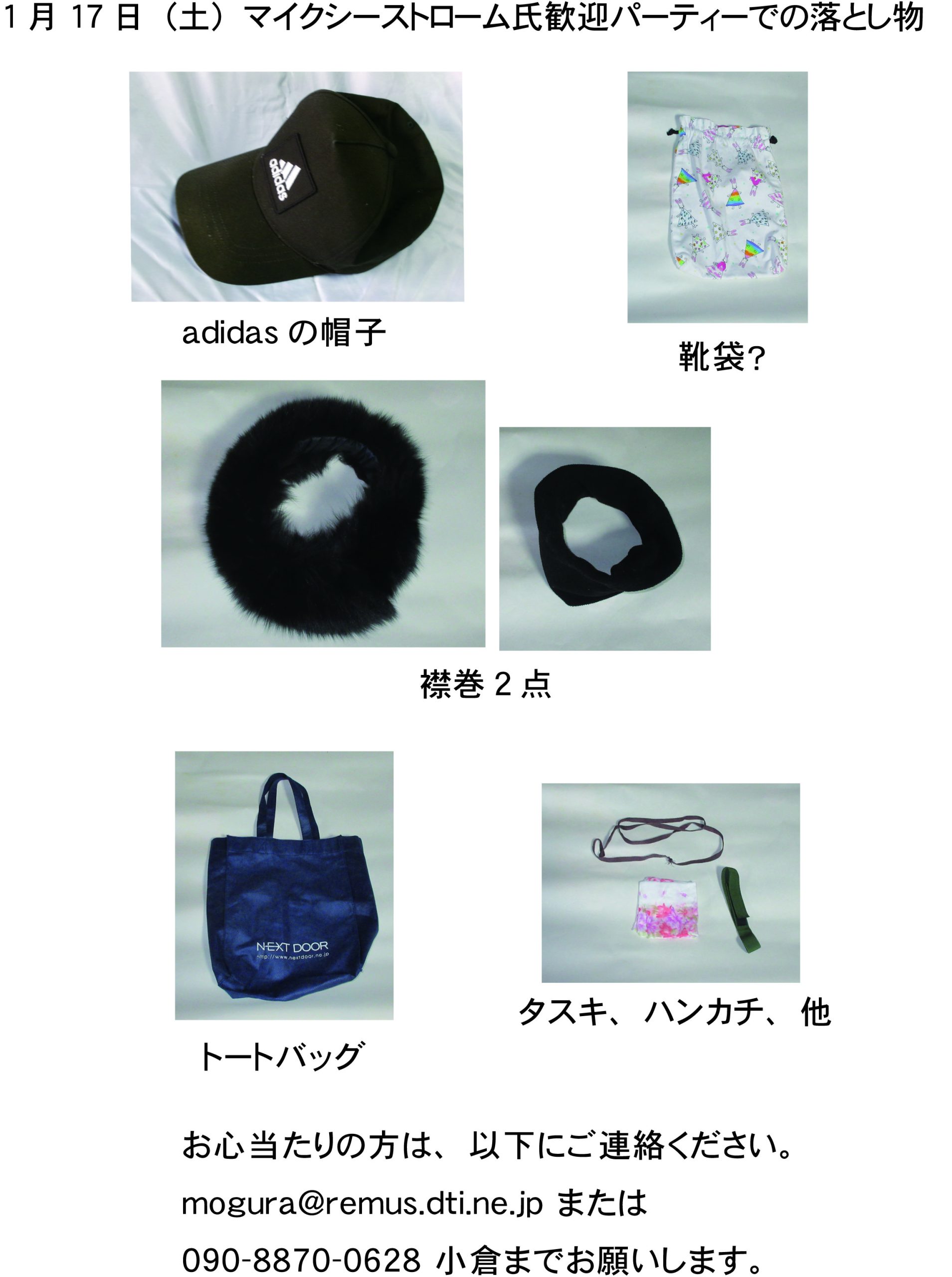 • マイクシーストローム氏歓迎パーティーでの忘れ物帽子追加